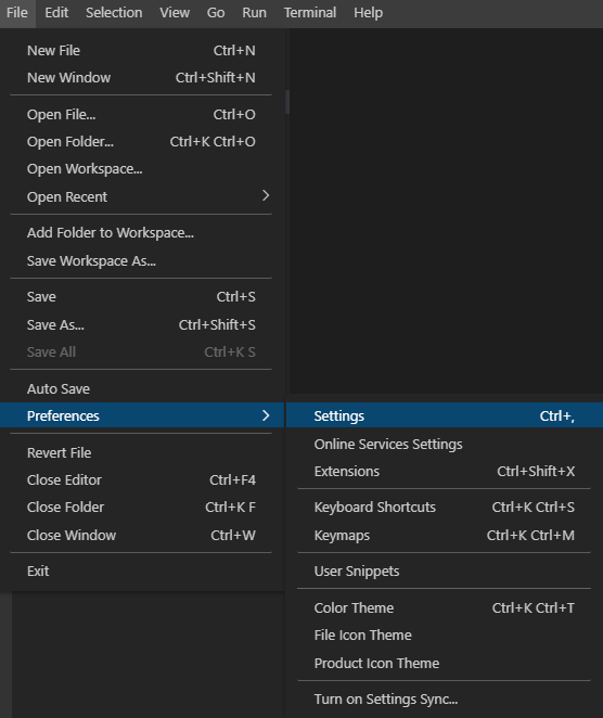 file -> prefernces -> Settings
