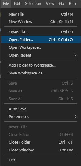 기본 대상이 되는 폴더를 만들어 주고 설정해 줍니다. File -> Open Folder...