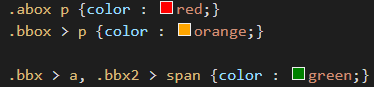 ex) section > p { color : blue; }