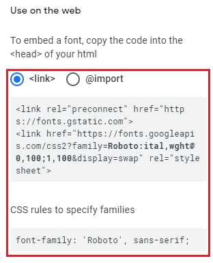 그러면 오른쪽에 아래 그림과 같은 창이 생성이 되는데, 여기서 link 방식으로 사용할건지, import 방식으로 사용할 건지 정하신 후에, 복사해서 붙여 넣으면 됩니다.