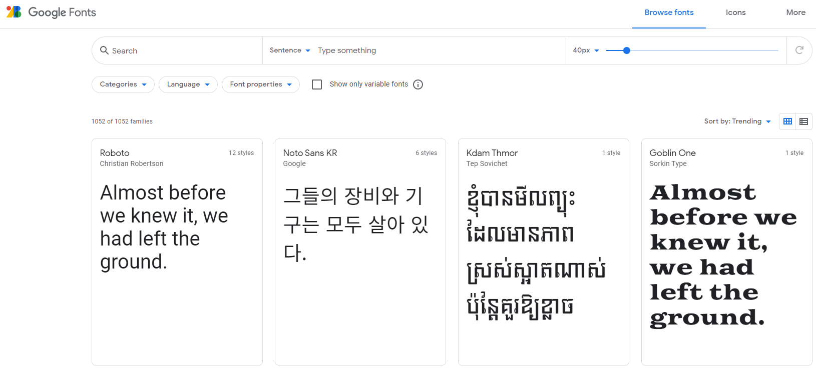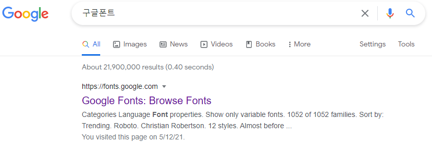 구글폰트에 들어가면 여러가지 폰트들이 나오는데, 그 중에 원하는 걸 선택합니다.