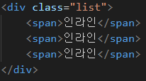 display : inline -> 블럭 요소를 인라인 요소로 변경