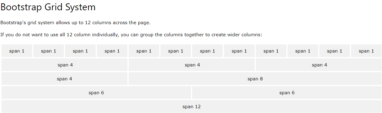 부트스트랩 에서는 위와 같이 화면을 12 개로 나누어서 각각의 크기를 지정했습니다.