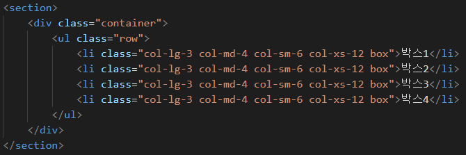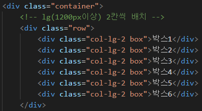 그리드를 사용하기 위해서는 부모요소의 클래스를 container 또는 container fluid 를 사용 해주어야 합니다.