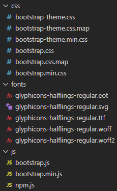부트스트랩 을 다운로드 받았으면, 해당 폴더를 전부 프로젝트 내로 가져 옵니다.