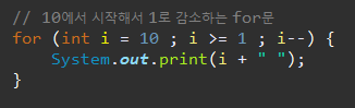 이렇게 , 10부터 시작해서 -- 연산자를 이용해, 감소시키는 방법도 있습니다.