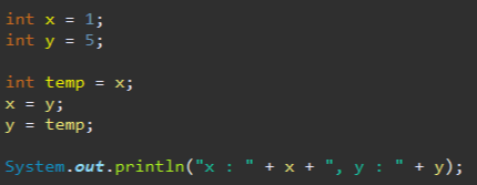 그렇기 때문에 x의 값을 잠시 저장할 변수를 선언해서 담아줍니다.