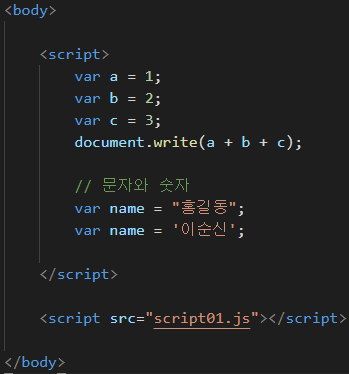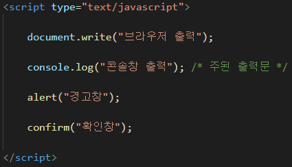 <script type="text/javascript"> : type속성을 이용해서 javascript를 사용하는게 원칙.