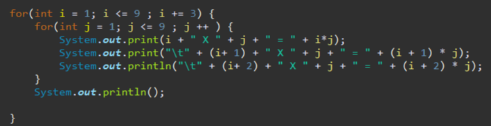 중첩 반복문에서 i 와 j 의 위치를 바꾸면 이렇게, 뽑을 수 있습니다.