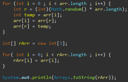 배열에 들어갈 index를 랜덤으로 뽑아줍니다 -> int r = (int)(Math.random() * arr.length);