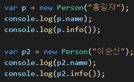 함수를 이용해서 객체를 선언할 때는, 함수 내에 this. 를 이용해서 선언을 합니다.