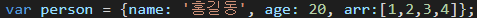 객체의 멤버변수는 "키 : 값" 을 가집니다.