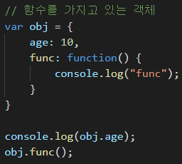 함수를 가지고 있는 객체 및 사용