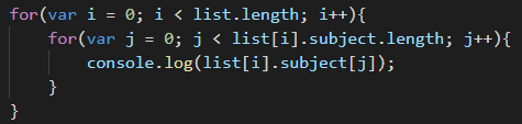 예제 아래의 list 객체를 중첩for 문을 이용해서 접근하기