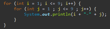 for ( int j = 1; j <= 9 ; j++) {