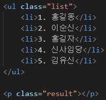 위와 같이 있을때, <li> 를 클릭하면, 아래의 <p> 태그의 innerHTML 이 바로 삽입이 되게하려면, 해당 <li> 태그에 전부 onclick 이벤트를 걸어주고, 클릭된 <li>가 어떤건지 파악한 후, 클릭된 <li> 를 <p> 에 넣어주면 되겠죠?