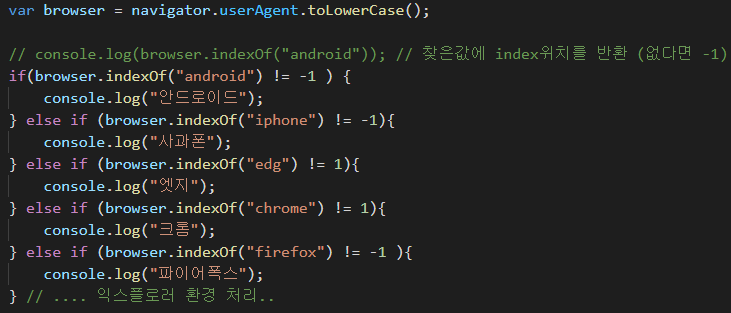 navigator.userAgent : 사용자의 브라우저 접속 환경