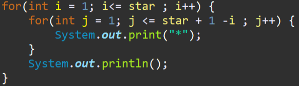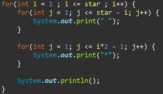 먼저 공백을 만들어주는 내부 반복문은 1개씩 줄어가네요? 위와 똑같죠