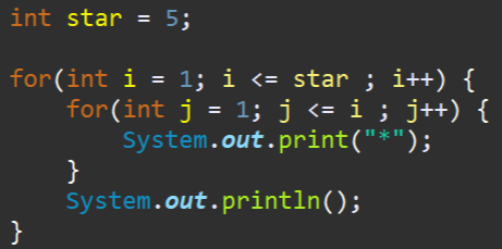 *을 찍어주는 내부 반복문은 1개부터 2개씩 늘어가네요?