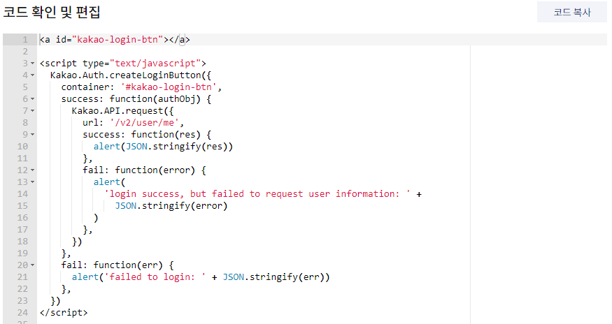 // 3. 데모버전으로 들어가서 카카오로그인 코드를 확인.