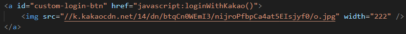 <a id="custom-login-btn" href="javascript:loginWithKakao()">