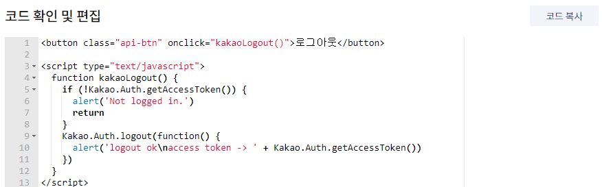 <button class="api-btn" onclick="kakaoLogout()">로그아웃</button>