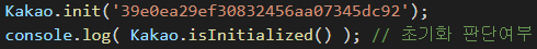 Kakao.init('인증키'); 를 사용해서 초기화를 해줍니다.