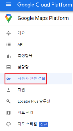 생성된 API 키는 왼쪽에 있는 사용자 인증정보에서 확인할 수 있습니다.