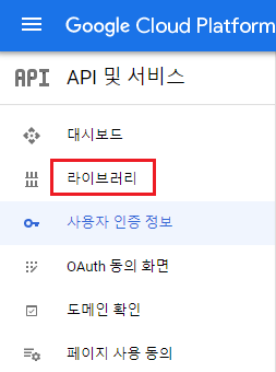 이제, 좌측 탭에 있는 라이브러리를 눌러서, 사용할 API 를 선택합니다. ( 저희는 맵 을 사용할꺼죠? )