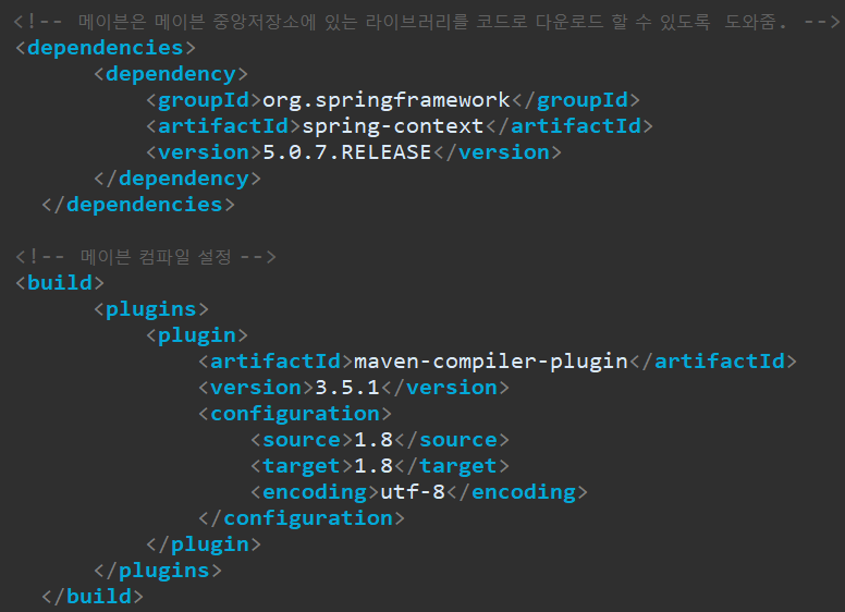"pom.xml" 에 아래의 코드를 작성해주세요