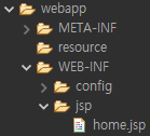 "WEB-INF" 폴더 아래에 "jsp" 폴더를 만들고, "home.jsp" 폴더를 만들어 줍니다.