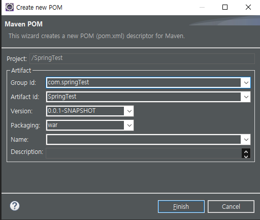 Artifact Id : 프로젝트 이름