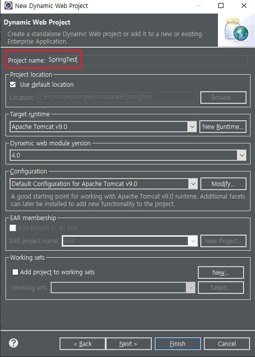 Tomcat 을 서버에 연결하고, "Dynamic Web Project" 를 생성합니다.