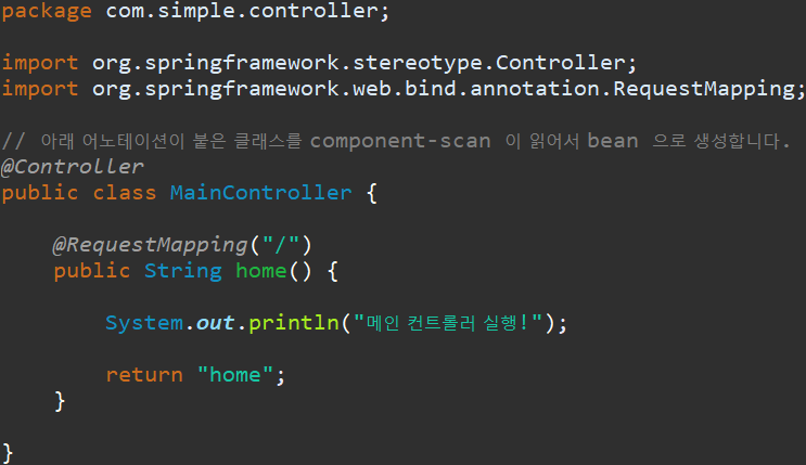 <!-- 컨트롤러 패키지를 읽어서 bean 으로 생성 -->