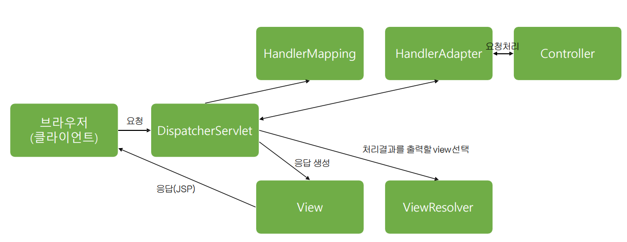 전체적으로 이러한 구조를 가진 JSP MVC2 를 Spring 에서도 사용하게 되는데요