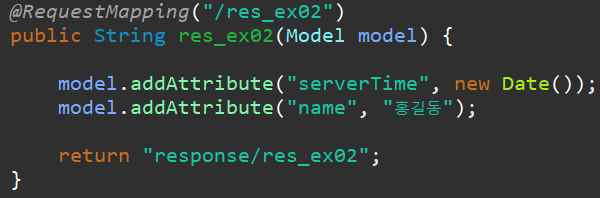 처음에, 컨트롤러를 경유할 때, 컨트롤러의 메서드에 Model 객체를 사용 합니다.