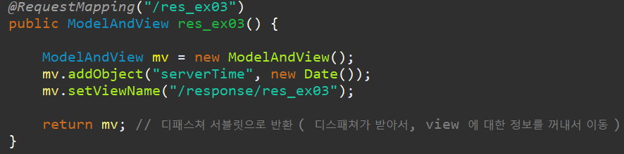 ModelAndView 객체는, parameter 를 저장하기도 하고, view 의 정보를 저장하기도 합니다.