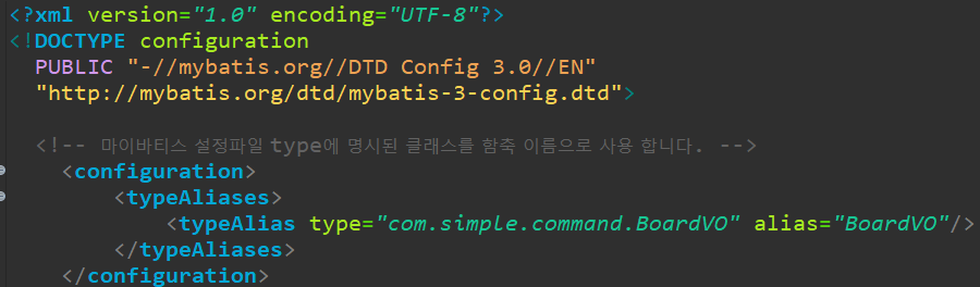 ※ 아래의 resultType 에 BoardVO 만 써져있는 이유는 5번에서 설정한 typeAlias 의 효과 입니다.
