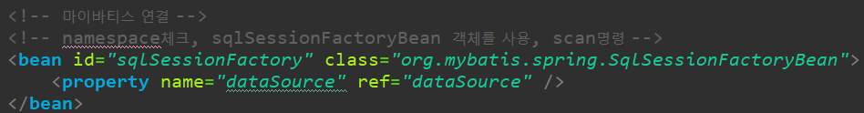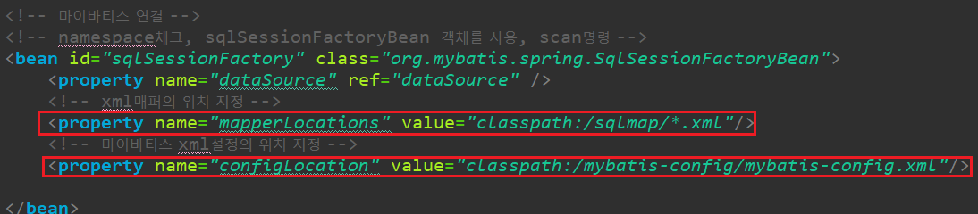 6. 외부 설정 파일 (root-context.xml) 2번 에서 만든 myBatis 에 위에서 만든 4,5번 추가