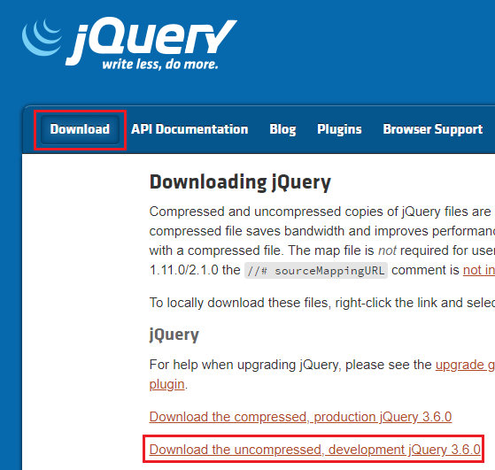 ※ 파일 이름은 편하게 사용할 수 있도록 "jquery.js" 로 해주세요