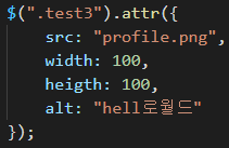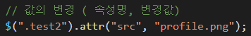 이 attr 함수는 두번째 매개변수로 값을 주면, 첫번째로 준 속성이 두번째로 준 값으로 변경 됩니다.