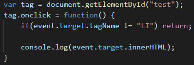 java script 에서의 이벤트 위임은 부모가 되는 태그에 이벤트를 걸어서 버블링을 이용한 자식 태그들의 이벤트 실행 방법 이었습니다. 아래 처럼요