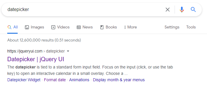 검색 엔진에 "datepicker" 라고 검색을 해줍니다.