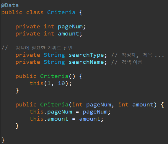 저번에 만든 Criteria 를 사용하도록 하겠습니다 ( search 는 사용 x )