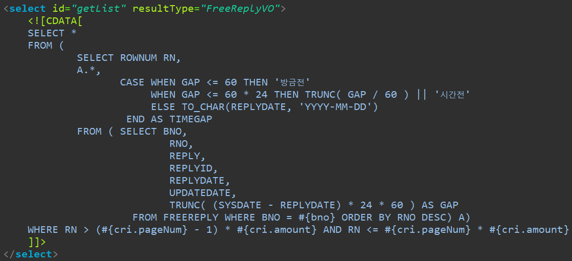 기존에 전체 댓글을 가져오던 곳에서, ROWNUM 을 추가하고 인라인뷰 로 감싼다음에 바깥 쪽에서 WHERE 를 사용하면 됩니다.