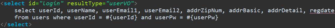 이제 SQL 문을 작성해주면 되는데, Mapper.xml 에서 아래와 같이 작성해주면 됩니다.