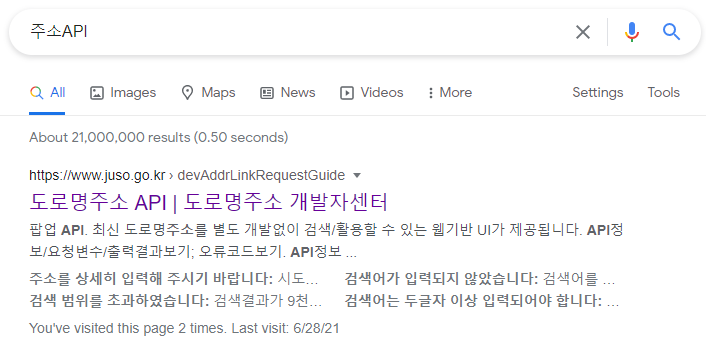 검색엔진에 "주소API" 를 검색 합니다.