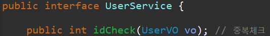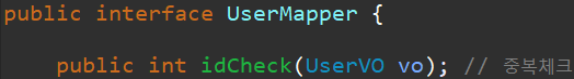 Service, SerivceImpl, Mapper.java 에는 각각 idCheck 라는 메서드를 만들어 줍니다.