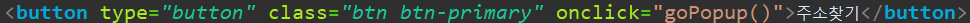 주소찾기 버튼을 누르면 아래의 함수를 실행하도록 만들어 줍니다. ( 콜백함수를 실행시켜서 필요한 값만 표시되도록 )