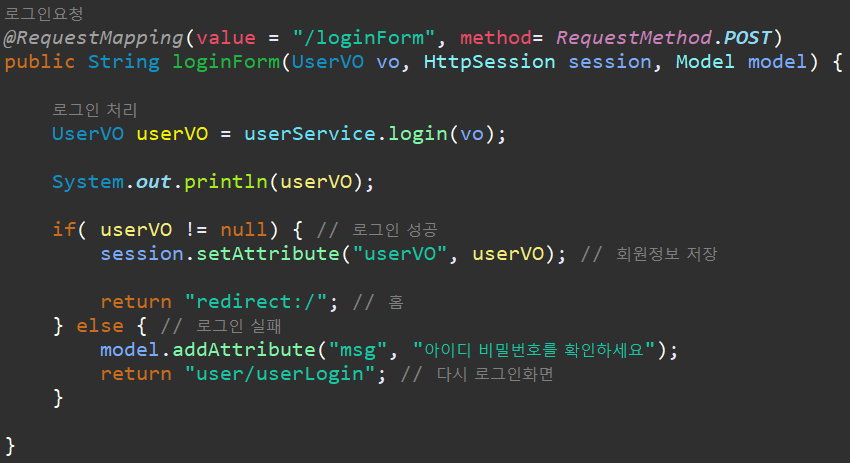 로그인을 누르면, 해당 값들이 컨트롤러로 넘어가도록 처리 해줍니다.